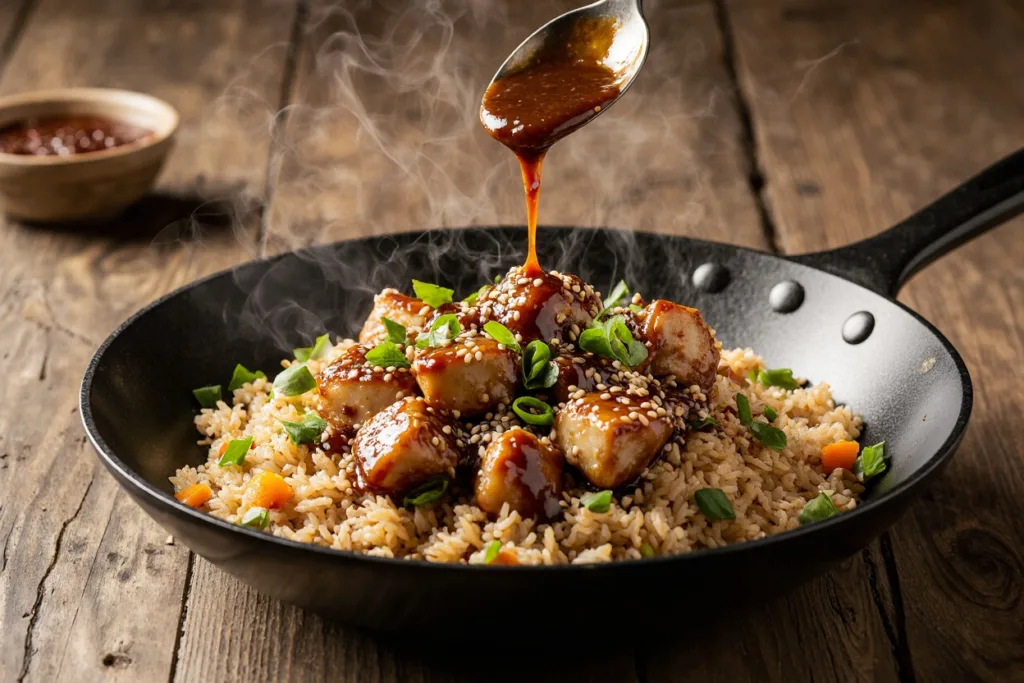 Bang Bang Fried Rice delivers crispy chicken coated in addictive sweet-spicy sauce over fluffy fried rice loaded with eggs and veggies. This easy recipe outperforms takeout with air fryer or skillet options, vegan twists, and full nutrition details.