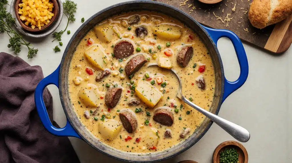 Cajun Potato Soup is great for busy nights because it cooks quickly and feels like a complete meal. The creamy broth warms you instantly. The sausage adds protein. The vegetables and potatoes make it hearty. The Cajun spices create excitement in every bite. You can make this dish for family dinners, gatherings, or cozy nights at home.
