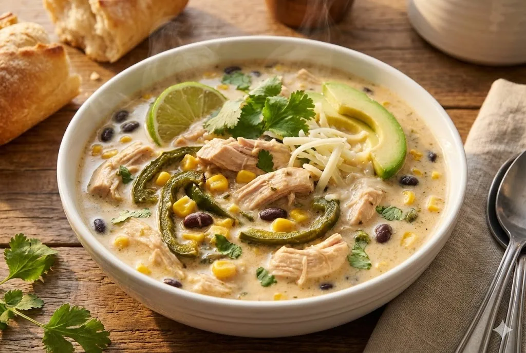 Chicken poblano soup features mild poblano peppers, which add gentle earthiness and a hint of smoke when roasted. Unlike spicier chiles, poblanos bring subtle flavor that pairs beautifully with creamy broth, corn for sweetness, and cheese for indulgence. It’s a cozy twist on classic chicken soup, ideal for fall and winter dinners.