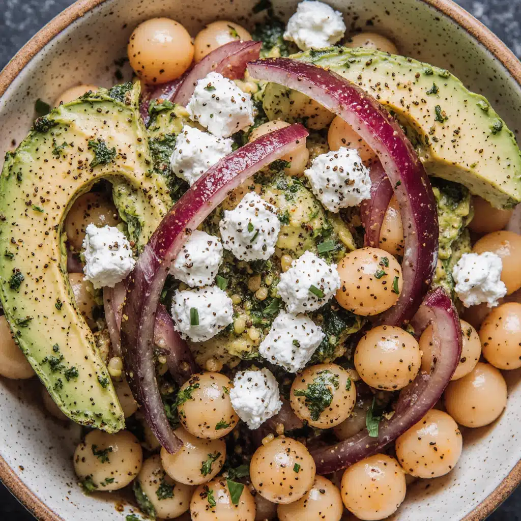 We consider this salad a perfect balance of plant-based protein, healthy fats, and fresh herbs. Chickpeas provide a hearty, filling base, while avocados add creaminess and essential nutrients. Feta cheese contributes a tangy, salty contrast that elevates the overall flavor. Finished with fresh lime juice and herbs, this salad feels light yet deeply satisfying. Its versatility allows it to fit seamlessly into a variety of eating styles, from vegetarian to flexitarian meals.