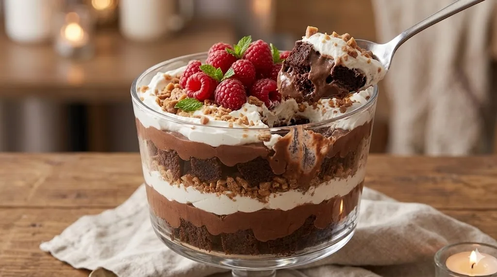 This chocolate brownie trifle (or chocolate cake trifle if you prefer) is a chocolate lover’s dream, and it’s super flexible for holidays like Christmas, birthdays, or potlucks. The layers create that gorgeous visual effect in a trifle bowl, and everyone digs right in with spoons.