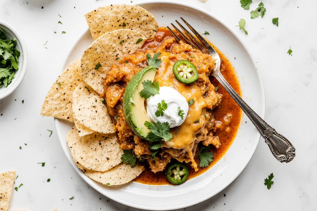 Toppings: Sour cream, sliced avocado, chopped cilantro, jalapeños, green onions, shredded lettuce. Pro Tip: For deeper flavor, quickly sauté onion and garlic in a skillet first, then add to slow cooker. Storage: Fridge 5 days, freezer 3 months. Reheat microwave or oven. Nutrition per serving (8 servings): 420 cal, 32g protein, 38g carbs, 18g fat, 6g fiber.
