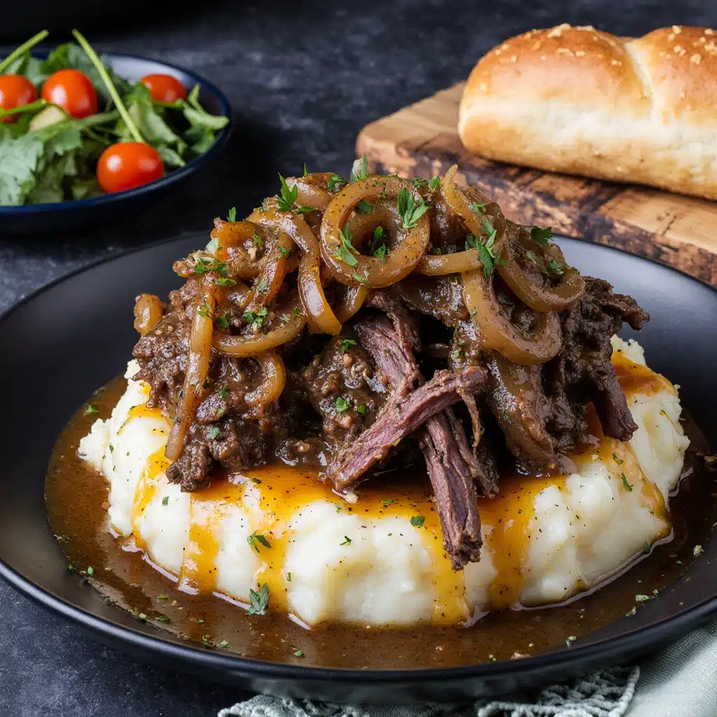 We serve French Onion Pot Roast over a bed of creamy mashed potatoes, allowing the gravy to seep into every layer. Alternatively, buttered egg noodles or crusty bread complement the sauce beautifully. A final sprinkle of fresh parsley adds color and balance.