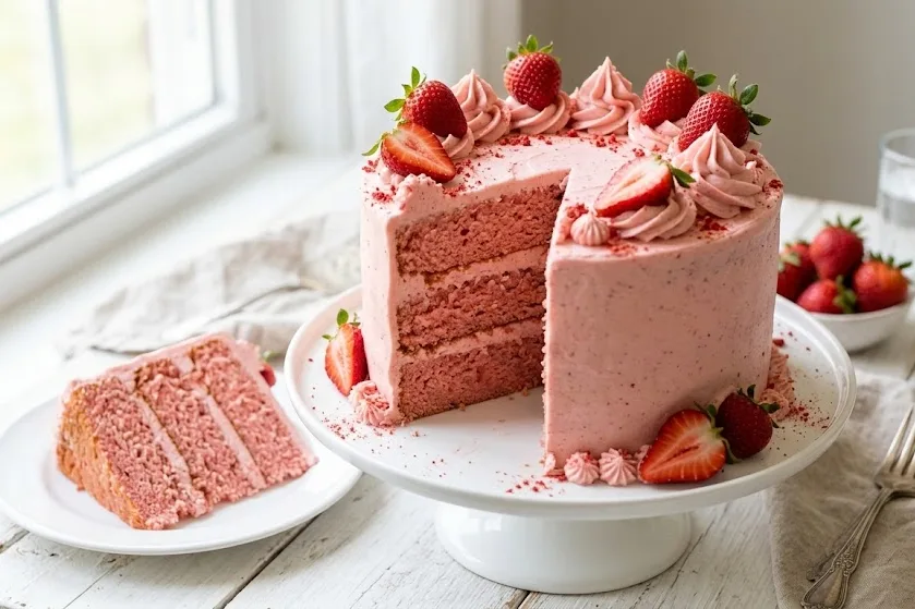 A slow‑cooked strawberry reduction gives you intense flavor without making the cake heavy, and a fluffy strawberry buttercream finishes it with even more berry goodness.