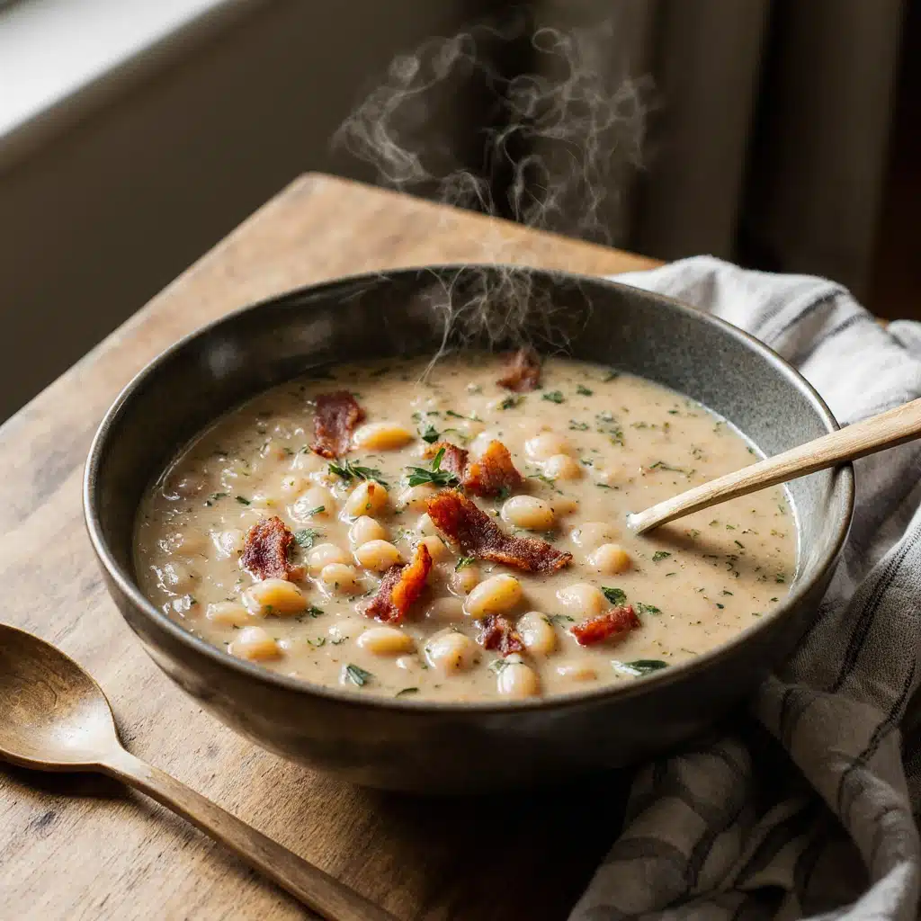 This soup is thick, velvety, and deeply savory. Bacon provides smokiness, beans add creaminess, and herbs lend subtle complexity. The partially blended texture makes the soup feel indulgent while remaining wholesome.
